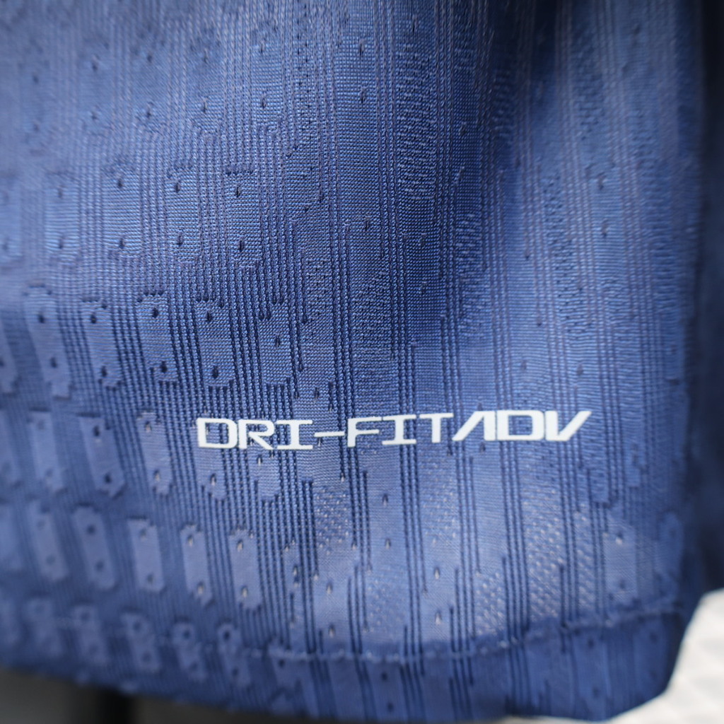 A camisa titular do Paris Saint-Germain 2025/26 na versão Jogador masculina traz um design moderno que mantém a essência do clube parisiense. O fundo em azul marinho é valorizado por uma faixa central vermelha com grafismo geométrico em linhas azuis, criando profundidade e estilo único. O escudo do PSG aparece no lado esquerdo do peito em aplicação emborrachada detalhada, enquanto o logo no lado direito também vem aplicado emborrachado branco. A gola redonda azul e as mangas curtas com acabamento discreto reforçam a elegância da peça. Um manto de destaque, pensado para performance e para quem busca unir tradição e modernidade em campo ou no dia a dia.