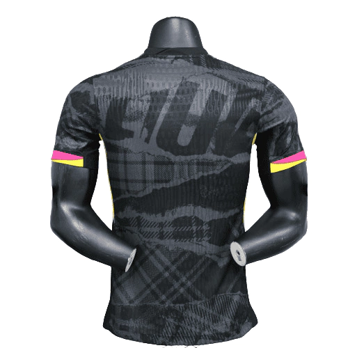 A edição especial do Chelsea 2024/25 traz um design arrojado em preto com padrões geométricos em tons de cinza, criando um visual moderno e tecnológico. O escudo termocolante rosa neon se destaca no peito, acompanhado por detalhes vibrantes na gola e nas mangas. O tecido texturizado oferece respirabilidade e ajuste perfeito, tornando este manto ideal para colecionadores e apaixonados pelo clube londrino.