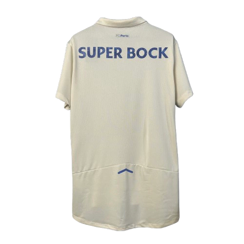 Este manto apresenta design clean em branco com gola polo clássica e detalhes sutis em azul. A estampa é lisa e moderna, enquanto o escudo termocolante em azul destaca o visual minimalista da terceira camisa 2025/26. Acabamento leve e confortável para o dia a dia.